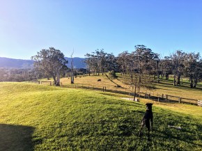 Sonny the Australian Kelpie overlooking his farm in Berry, NSW.