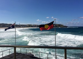 Rounding the turn to Bondi Beach on our Coastal Walk from Coogee Beach.